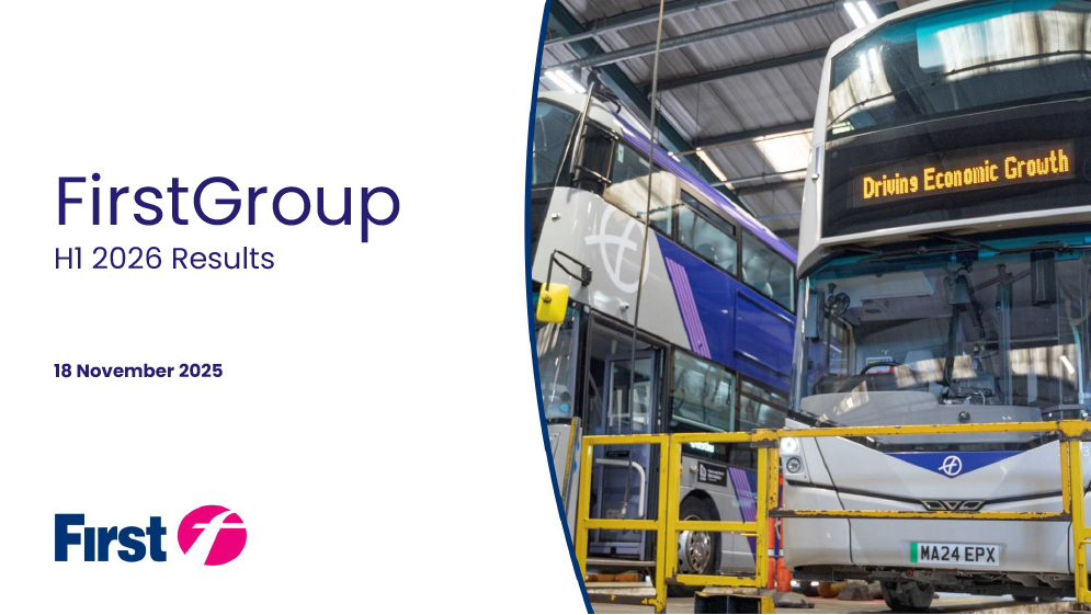 - Adjusted revenue up 30% to £833.6m (H1 2025 £639.6m) reflecting growth in bus revenues, the contribution of First Bus London and progress in First Rail open access and Rail services